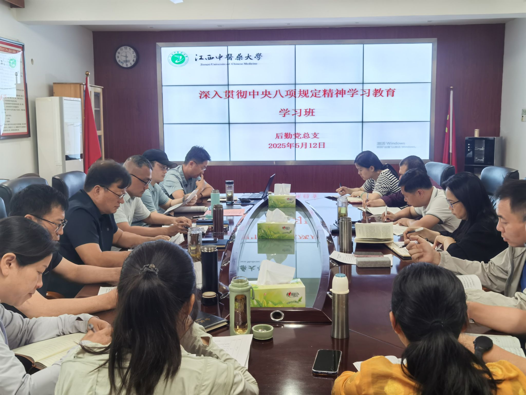 5月12日至5月14日,江西中医药大学后勤保障服务中心举办深入贯彻中央八项规定精神学习教育学习班,深入学习贯彻习近平总书记关于加强党的作风建设的重要论述和中央八项规定及其实施细则精神,扎实推进深入贯彻中央八项规定精神学习教育走深走实。后勤全体党员、主任级以上管理人员参加。