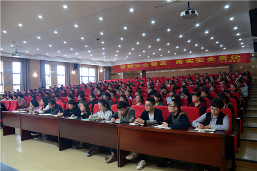 4月7日,学院在学术中心第二报告厅召开2017年度“安全生产月”动员大会,副院长王记清、金国锋出席会议并作重要讲话,安全保卫部、公共事务部负责人,公共事务部全体员工,医务室、施工单位及商铺档口代表参会。