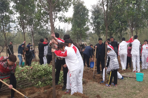 四、参与面广,效果明显。在今年的绿化工作中,后勤管理处广泛联系,动员社会各界及全体师生积极参与,共同美化校园,增强植树造林、爱护环境的意识。3月12日,我校与市林业局、临沂琅琊网等单位共同举办了“相约绿色、扮靓春天、你我共行”公益植树活动,来自全市家单位百名市民来到我校开展义务植树活动,向我校义务捐赠美国红枫1300余株,价值元。临沂市银行在我校设立金葵花林,连续第三年在我校开展义务植树活动,今年共捐赠高干红叶石楠棵。聊城大学向我校捐赠碧桃200余株,我们已经欣赏到美丽大的花朵。祥泰园林公司向我校捐赠20余万元的景观松,为科技实验大楼再添新景。在学雷锋活动月期间,校团委组织青年志愿者利用周末时间开展义务劳动,在学校青年林捡拾碎石2000余㎡,同学们用自己的实际行动为美化校园作出积极贡献。