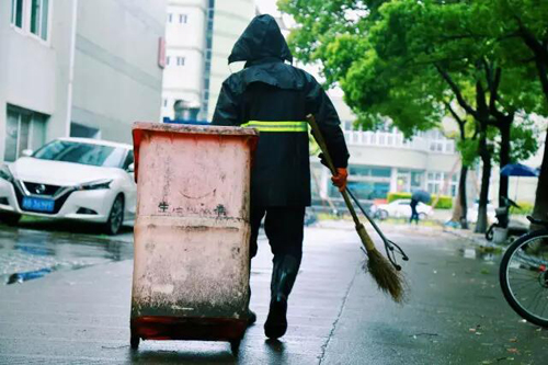 去年毕业生离校时,魏阿姨负责打扫了100多间毕业生寝室,每天五点就要起床过来,晚上六点多下班,加班加点一趟趟地打扫,一趟趟地搬运,甚至垃圾桶都不够用,阿姨“就地取材”,直接用学生丢弃的蚊帐打包垃圾搬运到垃圾场。一个瘦小的阿姨拖着巨大的垃圾桶往返于宿舍楼与垃圾站之间,不知大家是否关注到过,于我们而言这是第一次,一句辛苦已经无法表达内心的波澜,唯有致敬。