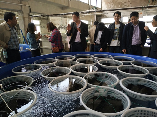 后勤党总支书记顾蓓乔讲解了西轩岛的发展历程、地理位置和空间布局,以及关于未来规划的设想方案。接着,大家实地考察了曼氏无针乌贼、苗种生产、日本黄姑鱼及小黄鱼的育苗生产基地,工作人员向大家介绍了每种育苗的特性、生长环境、研究等情况。此外,基建科的同志们还实地踏勘了西轩岛建设场地,着重了解了岛上的水源、电源、地形、道路、河流及附近海域情况。
