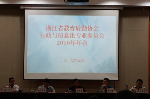 5月26日,浙江省教育后勤协会行政与信息化专业委员会2016年年会在温州大学召开。浙江省教育后勤协会副会长、温州大学副校长蔡曙光,浙江省教育厅计财处主任梁永辉,浙江省教育后勤协会秘书长、浙江师范大学后勤集团总经理丁敢真,行政与信息化专业委员会主任委员、浙江师范大学校属企业党工委书记兼后勤集团党委书记方豪彪等领导嘉宾出席。来自全省37所高校及企业的80余名代表参加了会议。我校后勤服务中心派代表参加了会议。
