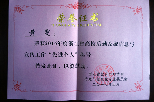 会议对2016年度省高校后勤系统信息与宣传工作先进单位和先进个人、省高校后勤信息化建设先进单位进行表彰。我校后勤服务中心黄雯获2016年度省高校后勤系统信息与宣传工作先进个人。