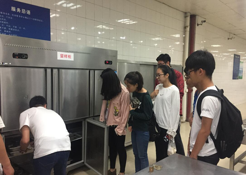 8点钟的文华餐厅后厨异常忙碌,在餐饮部部长的陪同下,同学们看到了自己每天吃的食物清洗、切配、加工的过程,看到了留样柜里保存48小时的菜品,对食品安全有了更直观的看法;随后在校医院,院长为同学们讲解了就医流程,并详细解答了关于转院和医保报销等问题;最后大家一起来到学生事务中心,了解一卡通和报告厅预约流程等各项事宜。