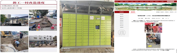 小区改造暖人心。积极与政府沟通,申请政府资金,改造老旧小区;在教工家属区安装快递柜及自动收件机,方便教职工收取快递;进行水电设施安全隐患排查,维修空调等设备,及时消除了水电设施的安全隐患;设立非机动车挂牌点,方便师生办理电动车上牌业务。