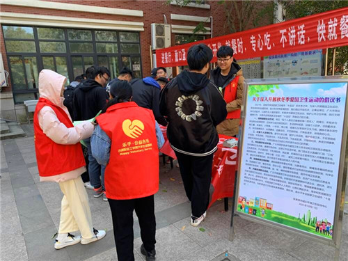在活动现场,学生志愿者通过向师生发放深入开展秋冬季爱国卫生运动的倡议书,邀请师生参加签名活动,志愿者讲解开展爱国卫生运动的重要意义。号召大家培育健康生活方式,注重个人文明行为,共创美好生活环境,为营造整洁卫生的美丽校园作出自己的贡献。 (沙洲职业工学院 周晓炜 文/俞建宏 摄)
