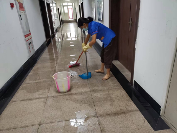 逸夫楼、211大楼保洁人员到达现场后,发现现场积水波及面积大,且很快会蔓延至其他实验室内,仅凭本楼栋的人员不能及时清理,立即上报值班管理员,协调就近楼栋保洁人员支援抢修工作。因为扫水及时,没有造成更大的损失,事后各个科研室的师生都非常感激保洁人员的及时援助,纷纷为她们点赞。