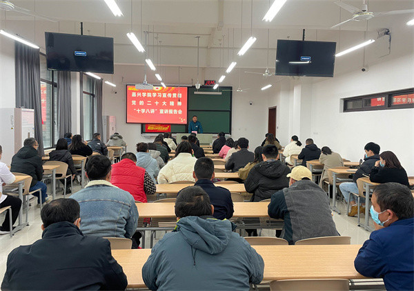 吴国祥结合自己对党的二十大精神的学习和领会,围绕“党的二十大报告的15个部分、党的二十大报告提出的一系列重要论述、对未来的美好展望、奋力书写新时代‘赶考’路上的嘉院后勤答卷”等四个方面进行了详细讲述。他强调,党的二十大精神内容十分丰富,既有政治上的高瞻远瞩和理论上的深邃思考,也有目标上的科学设定和工作上的战略部署,要用好各种平台和渠道,采用多种形式,结合实际学、结合工作学,切实将思想和行动统一到党的二十大精神上来;要坚持不懈用习近平新时代中国特色社会主义思想凝心铸魂,把党的最新理论成果转化为指导实践、推动工作的强大动力,真正做到学思用贯通、知信行统一。