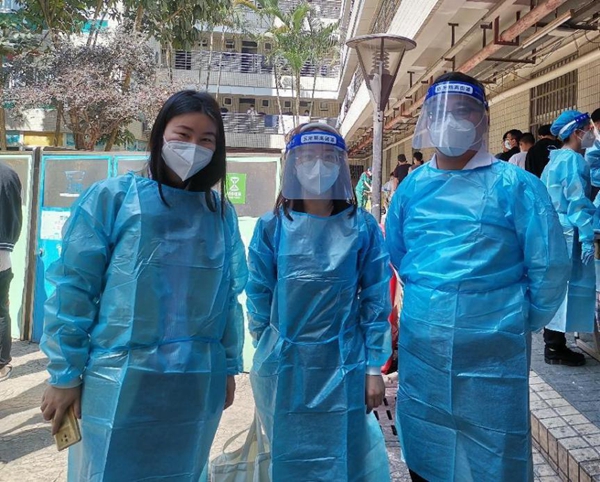 图2 领导老师参与核酸检测服务工作