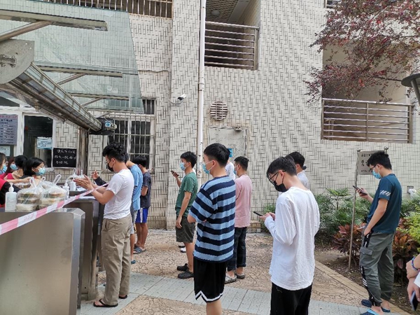 依托“五室一站”党建进公寓实践育人工程,广州大学推进“一站式”学生社区综合管理模式建设。目前广州大学已在学生公寓推进学生社区党建网格化管理,塑造既能做好日常管理又能应对危急险重的组织队伍,实现党的工作在校园内全面有效覆盖。学生公寓楼临时管控期间,广州大学坚持党建引领,让“党旗”在疫情防控一线高高飘扬,充分发挥教师党员突击队、辅导员团队、学生社区学生党员突击队3支队伍模范带头作用,同时依托学生青年突击队及宿舍管理团队2支队伍,对临时管控区实行全覆盖、全链条管理,做到“处处有人在、事事有人管”。一是结合宿舍床位表及借助门禁刷卡记录、楼道监控系统等技术手段,快速对2名密接者进行流调,并全力配合疾控中心将密接者及次密接者有序转运到隔离点;二是连夜在临时管控区拉好警戒线,现场工作人员24小时不眠不休,全天候值守及提供服务,坚守抗击疫情最前线;三是指引学生按楼层按时间段有序下楼取餐,当天共免费配送早餐2400份、午餐2147份和晚餐2137份,加强学生用餐保障;四是做好核酸检测点布置及核酸检测秩序指引等工作,确保核酸检测高效运转;五是为楼内参加2022年教师资格证笔试的考生提供备用考场,确保考试顺利等。