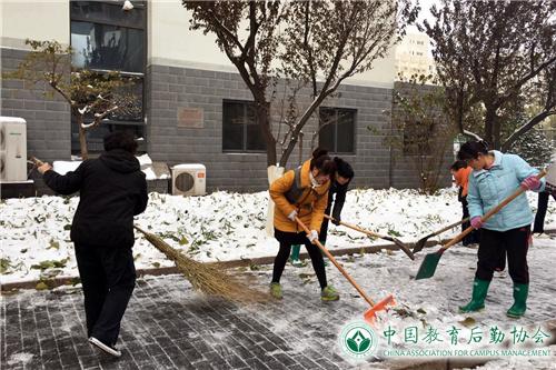 此次扫雪铲冰过程中,后勤集团各部门员工通力合作,冒着风雨,通过反复清扫,共同完成校园扫雪工作,确保校园主要校道路、教学区、办公区、家属区等重点区域没有积雪结冰,切实保障了师生出行方便,保障了学校各项教学科研工作的正常进行。