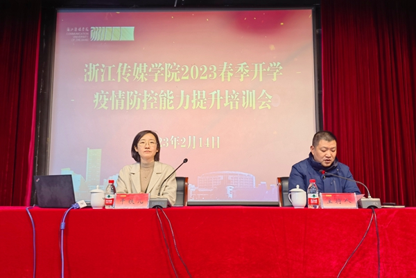 2月14日,浙江传媒学院2023春季开学疫情防控能力提升培训在钱塘校区行政楼报告厅举行,后勤服务中心疫情防控工作领导小组成员、健康驿站工作人员、校医院全体工作人员以及信息员、宿管员和其他重点岗位工作人员参加了培训。培训主要围绕《新冠病毒感染预防与控制》、《轻型、普通型新冠感染的规范处置》和《重型、危重型新冠感染的识别和处理》三个内容展开,省中医院的专家详细介绍了疫情防控方面的知识,进一步强化学校教职员工的防疫意识,为春季新学期做好准备。