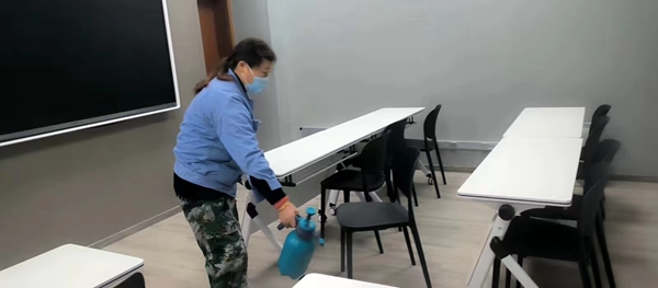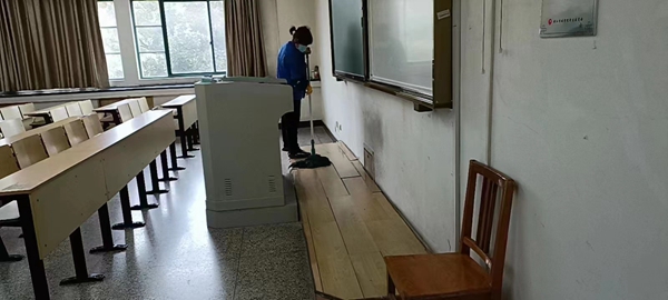 公寓管理中心的工作人员按照前期会议布置,积极开始各项准备,包括公共区域环境卫生打扫、设施设备检查维修以及消毒杀菌,以及为学生们的寝室开窗通风等。另外,公寓板报已经更新,“我们开学啦”、“返校啦,欢迎回来”等标语跃然眼前。
