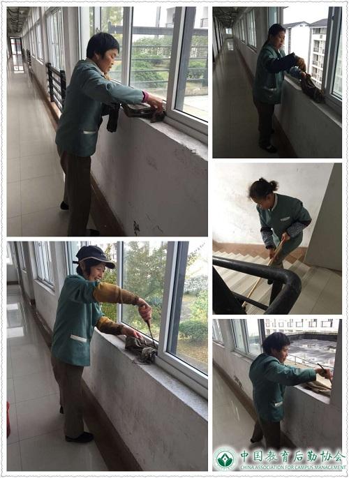 下午一点半,比赛人员提前到达现场抽签确定比赛顺序,主持人赵静讲解比赛规则和流程,比赛内容为每个人负责一层走廊、窗槽、栏杆、门板的保洁。整场比赛现场精彩纷呈,选手们挥汗如雨、争分夺秒、你追我赶;评委们仔细追踪比赛全程,并对比赛情况作现场点评。经过90分钟,比赛结束。经过评委评比打分,决出了一二三等奖,保洁组保洁员王兰英、陈秀兰分别夺得金牌保洁员和铜牌保洁员称号,宿舍组季广兰则夺得银牌保洁员称号。最后由管理员罗立华对此次比赛进行总结,她指出保洁员在操作过程中的注意事项,强调在今后的保洁服务工作中要多注重保洁细节和掌握保洁技巧,以提升服务质量。