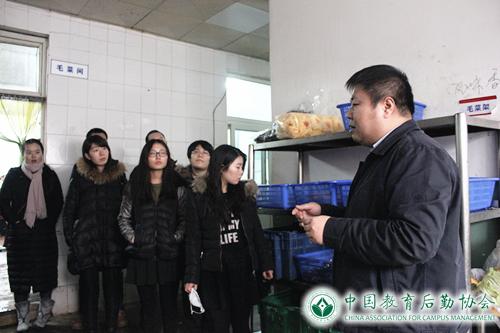 本次活动由西区食堂主任顾佳作为主讲人,他首先向参加食堂开放日的同学们介绍我校食堂的概况、生产加工的基本流程,以及学生食堂的采购流程和方式,并带领同学们参观学生食堂。在顾佳的带领下,同学们走进了西区食堂实地查看了蔬菜加工间、主食生产间、炒菜间、售饭区、洗碗间等工作区。