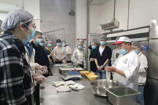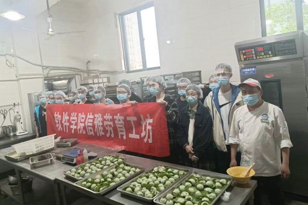 《随园食单》中记载:“捣青草为汁,和粉作团,色如碧玉。”活动一开始,同学们都摩拳擦掌,在餐厅师傅的指导下,认真观摩、学习,跟着师傅一起,捣汁、和馅儿、揉面团……大火蒸煮出艾草的清香味,大家共同品尝劳动成果,享受清爽绿意中软糯绵韧、甜而不腻的口感。