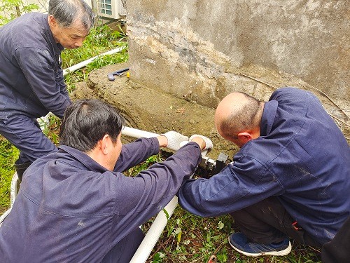 完成水管抢修工作后,水电组员工又马不停蹄地前往各处上报地点进行水电维修。抢修就是命令,保障就是责任,水电组员工24小时待命,随时准备处置日常水电维修及突发状况,力求保障全校师生水电的正常供应和使用。
