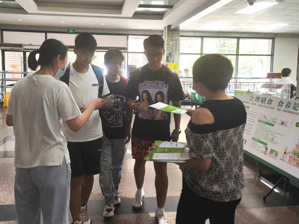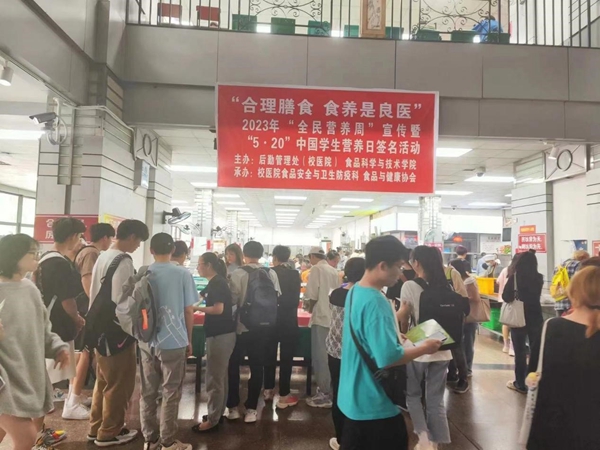 活动通过悬挂横幅、摆放展板、现场签名、知识讲解和发放宣传资料等形式,围绕宣传主题,以国家膳食指南核心信息为依托,以全民动员为目的,宣传了合理膳食对增强免疫、预防疾病的重要意义。食品安全与卫生防疫科的老师们向同学们发出倡议,希望大家广泛宣传和践行“食养是良医”的认识,寓医于食、食医合一,把“食养是良医”落实到日常合理膳食中,落实到疾病防治中,全面提升人体免疫力,促进身心健康。活动还倡议同学们要掌握营养健康知识和技能,学会认识食物、了解食物的营养特点,学会阅读食品标签,挑选适合自己的食物;认识身边常见的食药物质,结合自身情况,合理搭配日常膳食,养成良好饮食习惯,是预防和改善病症的关键。