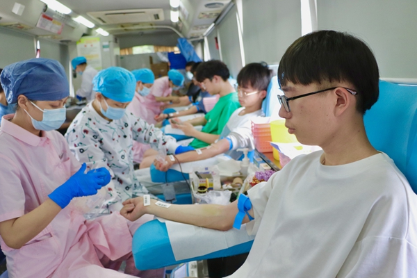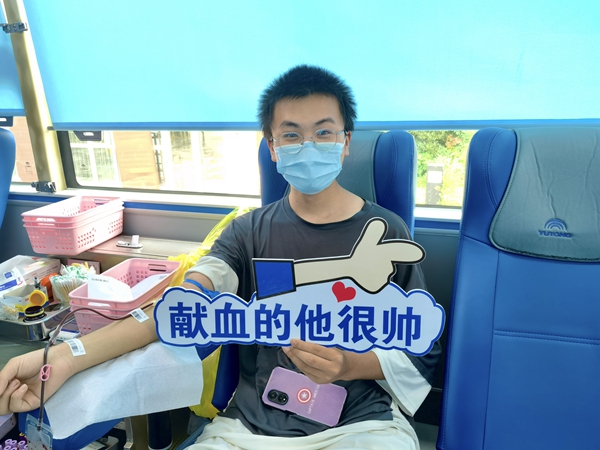 “当医务人员熟练的把针头刺进我的血管时,当时会感觉有点痛,但痛的同时也会由衷地感觉到欣慰。我想到我的血会拯救他人的生命,这太有意义啦!”环境工程专业的陈家儒在献血车前分享他的心得感悟。