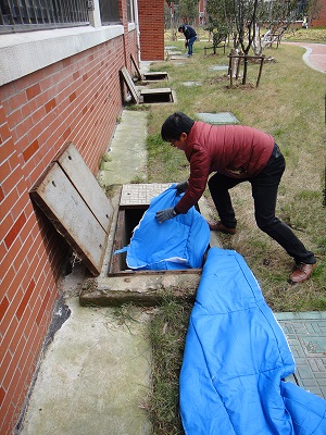 三是防范措施到位。水电、公寓、食堂各部门通力合作,利用废旧棉絮包裹室外水表、水管,防止因严重冰冻造成水表、水管损坏。基建部门通知太阳能热水器、一卡通供应商做好设备防冻措施。