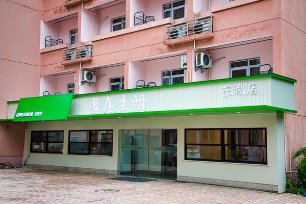 经过一个暑假的潜心升级,求真生活西径店、东湖店不仅仅满足于自助收银、休闲空间的加持,还成为了一个有实力的门面担当。超市门头采用白色和绿色的极简主义搭配令人耳目一新,眼前一亮。同时西径店浓厚了文化氛围,吸取学校“求真、敬业”校训以及商贸部“求真生活”品牌元素,精心设计了超市文化墙,形成了富有特色的求真文化氛围,在日常服务中起到潜移默化的育人功能。