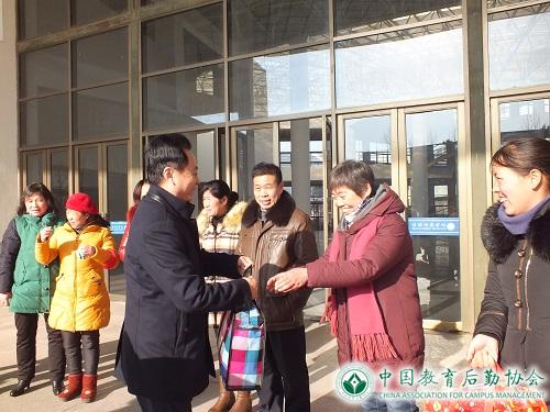 “大家辛苦了,祝大家万事如意。”在长江路校区教A楼前,杨书记将一份份大礼包送到保洁员们手中,在送上新春祝福的同时,杨书记表示,感谢后勤服务集团的员工们长期来“舍小家、为大家”的无私奉献,春节期间你们放弃节假日休息与家人团聚而坚守岗位,确保了校园环境漂亮洁净。