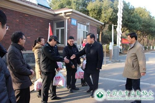 2月7日除夕上午,南京工业大学党委书记王德明教授、校长黄维院士、 校党委副书记副校长高明教授带领后勤服务部和后勤服务集团的部分领导,分别亲切慰问了江浦校区和新模范马路校区春节期间在岗的后勤员工,向他们拜了年,并一一送上了慰问金或慰问品。