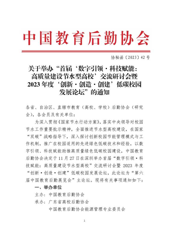 关于举办“首届‘数字引领·科技赋能:高质量建设节水型高校’交流研讨会暨2023年度‘创新·创造·创建’低碳校园发展论坛”的通知