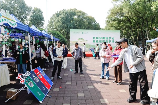 活动以视听、游戏、创意等形式,在宁大卷起一股绿色环保新风潮。现场,同学们热情参与到各种各样的游戏中。活动有学生社区服务中心“垃圾分类,乐在“棋”中”、餐饮服务中心“变‘废’为‘肥’ 共‘荟’绿色生活”、物业服务中心“绿色环保 ‘袋袋’相传”、维修与水电服务中心“垃圾分类,‘包’你学会”、运输服务中心“非遗指间绕,‘竹’你平安”等等。各个摊位前人来人往,同学们共同在玩中学,学中乐。
