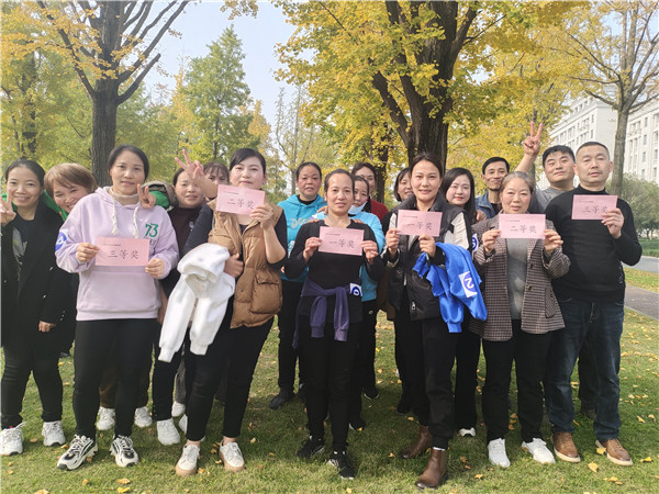 暖阳透过金黄的银杏叶,斑驳的映照在争你追我赶忙着打卡任务的员工身上,一片岁月静好。查看点位分布、制定路线行程,有计划有步骤,最快完成五项任务的一组员工仅用时20分钟!