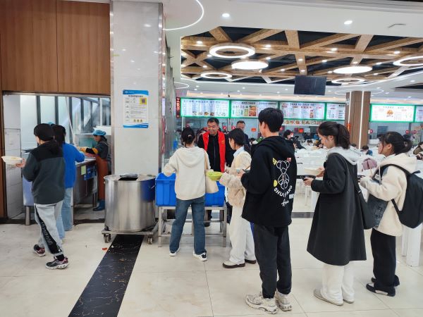 11月份组织了“知味堂、溢香园餐厅志愿者活动”,志愿者现场引导学生文明就餐、光盘行动、分类倾倒厨余垃圾,劝阻身穿实验服就餐;组织了“清理‘僵尸车’专项整治行动”,志愿者挪车清扫、分类清理,引导师生勤俭节约、爱护环境,维护文明校园成果。