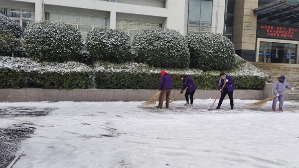 12月18日下午至12月19日上午,江苏护理职业学院后勤保卫党总支组织党员干部、广大职工在科技路校区、黄河路校区开展了清雪除冰行动。在大家的不懈奋战下,通往教学楼、学生公寓、办公楼、食堂楼、后勤楼、医务室等重要场所的所有路段均已完成冰雪清扫和撒盐作业,切实保障了全校师生的安全通行,有力展现了后勤人在“急险难”任务中能够冲得上、完得成的良好工作风采。驻校物业公司人员等外包服务单位人员给予这场行动以有力的配合,发挥了重要作用。以下为现场图片: