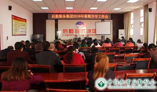 总经理姚成强从三个方面作工作安排和部署,一是简要回顾2015年集团所取得的主要成绩。二是认清新形势,明确新任务,努力完成2016年工作任务。其中重点谈到:以党建为抓手,巩固和拓展党的群众路线教育实践活动取得的成果,加强基层党建;加强后勤文化建设,培育立体育人环境;主动适应变革,有序推进后勤保障工作;深化人事分配制度改革,推进用工管理精细化;加强节能监管平台建设,全力打造节约型后勤;持续开展“质量效益”争先创优活动,塑造优质服务品牌;优化管理服务运行机制,提升后勤服务质量;进一步落实党风廉政责任,抓好集团廉政建设工作;寻求产业发展新思路,不断拓展经营服务项目。三是对2016年春期开学有关工作进行部署。传达学校2016年春期开学工作会议精神、认真做好安全工作,确保安全生产;认真做好财务合并、规范财务管理工作;认真完成部门年度工作计划;积极配合学校和市委巡视组做好对我校专项巡视工作。