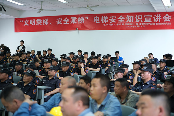 为进一步提高师生员工电梯故障应变能力,助力掌握科学有效应急救援办法,4月24日,电子科技大学后勤保障部维修服务中心邀请四川省特种设备检验研究院专家彭岗桂对我校师生、员工进行电梯安全知识宣讲,并组织开展电梯应急救援演练。
