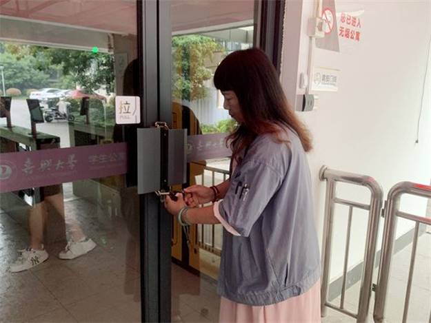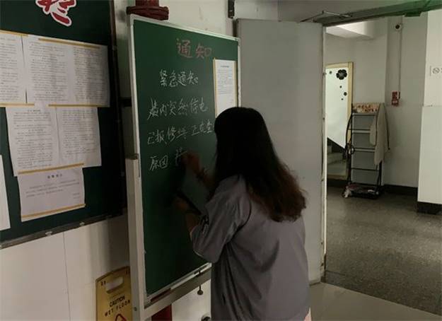 突然大面积停电的应急演练设置在和兴苑1-2号楼。当学生公寓楼内突然非正常断电时,值班员第一时间向楼长进行汇报,并通过学生公寓QQ群、楼口黑板等渠道发出通知。为确保学生公寓在断电期间的安全稳定,值班员及时将楼宇内的所有磁力门上锁;水电主管及时联络外包服务商告知停电情况。当维修完成、公寓楼内恢复供电后,值班员取下磁力门锁,检查磁力门是否正常;外包服务商到达现场检查外包设备有无故障。