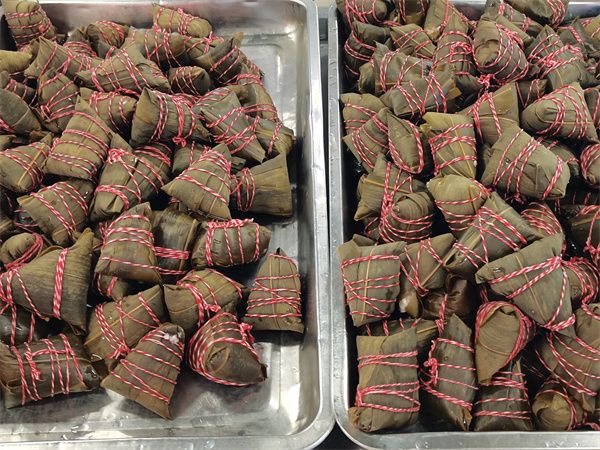 “手执艾旗招百福,门悬蒲剑斩千邪”,艾草可以招百福,菖蒲可以辟邪,包含了对幸福美好生活的愿景。6月7日,饮食服务部员工精挑细选,将艾草和菖蒲捆扎在一起,在中午就餐时间,将粽子和艾草一起送到教职工手中,为他们送去平安与祝福。6月10日,学生在餐厅就餐时会收到餐厅免费赠送的美味“嘉里”粽,每只粽子都由饮食服务部员工亲手制作,确保了食材的新鲜与卫生,为学生送上了关怀与温暖。