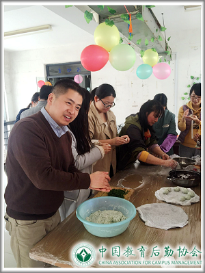 清明节即将来临之际,东吴物业苏大阳澄湖校区项目部宿舍组织了一项“动手包青团,品味江南传统美食”的活动。此次活动特别邀请了学校宿管办主任伊卫星老师及张梦思老师、成教院秘书陈耀老师、轨道学院团委顾艳飞老师出席。