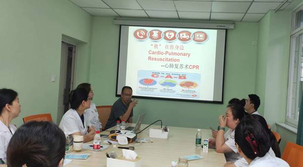 演练前,谭建军院长着重讲解“黄金四分钟”的重要性,内科吴茂芳医生就相关核心技术和操作要领为全院医护进行了理论和操作培训。