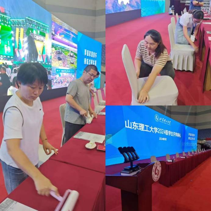 接到新生开学典礼任务后,物业服务中心高度重视,快速召开专项工作协调会,主动与校办、学生工作部等部门对接,落实服务保障工作。9月4日,各部门协调联动,搬运桌椅演讲台等,完成主席台布置、桌布铺设和演讲台摆放等工作。5日,山东理工大学新生开学典礼暨军训动员大会在淄博市体育中心综合体育馆举行,中心全程做好音响保障等服务工作。典礼结束后,场地复原收尾工作快速有序进行。