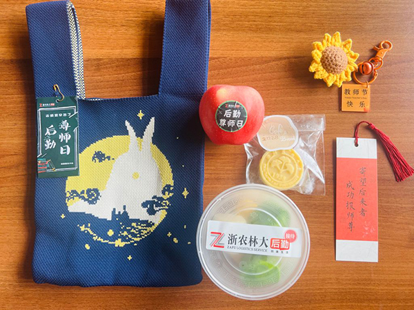 东湖、衣锦校区教工餐厅,银杏餐厅,壹玖58西餐厅,印象农林主题餐厅在中餐时间为老师们送上节日礼包,装满最诚挚的祝愿和感谢。