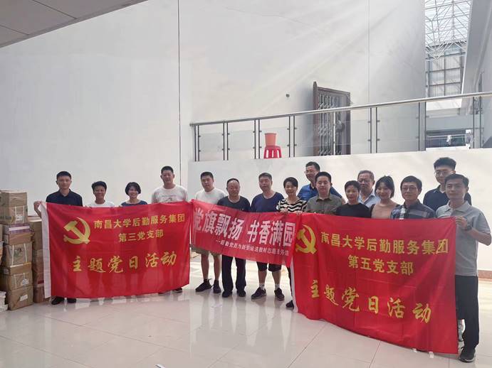为深入贯彻落实党的二十届三中全会精神,进一步引导党员同志们立足岗位做贡献,结合后勤保障处(后勤服务集团)2024年“优质服务月”计划安排,2024年9月14日下午,后勤服务集团第三、第五党支部开展了“党旗飘扬 书香满园”党员义务为新生运送教材志愿服务活动。