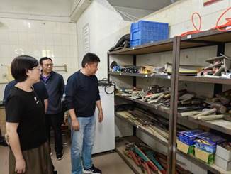 检查组先来到后勤处维修中心库房和物资管理科中心库房,详细询问库房日常管理工作,同时对库房的消防设施、消防通道是否通畅、是否有易燃物品堆放等一一进行检查,并要求对待报废物资加强监管,配置灭火器材。随后,检查组来到学生二食堂和五食堂,对售饭窗口、后厨食材库房和各操作间等展开安全检查。对于在检查中发现的安全隐患,检查组有针对性地提出整改意见,并要求相关责任人限时立即整改。