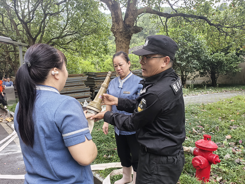 宿管员与保洁员在学习后,轮番上阵进行实操,对现场模拟火点进行灭火操作。在大家掌握灭火器使用后,朱海军演练了消防水带的正确使用方法,更直观地让员工们了解消防水带的构造,包括水带的接口、水枪的类型等细节,组织参训人员进行演练操作,手把手教会她们正确使用消防设备,使她们在实际操作时可以更熟练地连接和使用各个部件。