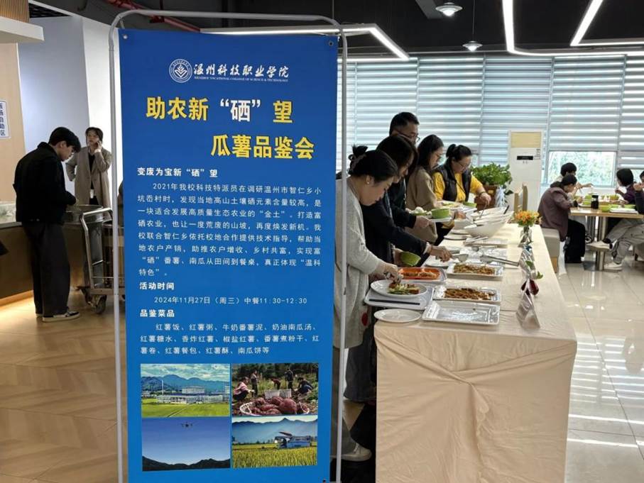 11月27日中午,学校在各食堂开展“助农新‘硒’望、瓜薯品鉴会”,食堂员工用心制作来自乐清智仁乡的番薯、南瓜,为全校师生带来瓜薯盛宴。