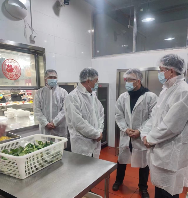 张福庆深入学校南昌校区各食堂,查看了“互联网+明厨亮灶”平台运行、饭菜售卖价格和质量、加工制作流程、就餐及备餐区域环境卫生、管理台账等情况。通过看现场、听汇报、阅资料、提问题等方式,详细了解食堂规范管理、餐具消毒、从业人员培训、原材料采购与存储、食品留样、师生就餐意见反馈渠道等情况,对学校食品安全管理工作给予了充分的肯定。