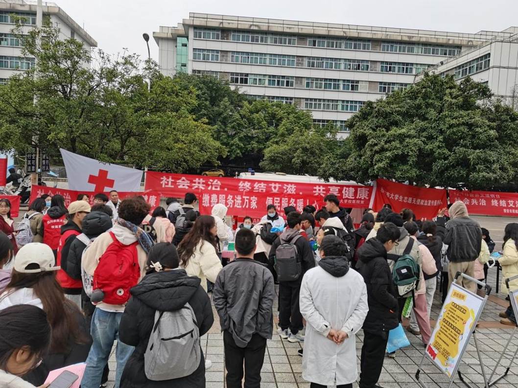 都江堰校区充分展现了高校在公共卫生教育中的积极作用,通过一系列独具特色的活动,调动师生的积极性和参与度,亮点频现。校区综管办、红十字会与支教协会联合开展“艾知问答挑战”活动,以趣味答题的形式呈现,将艾滋病防治知识巧妙地融入活动中。“创意视频”活动则通过生动的视觉语言传达防艾理念,充分激发同学们的艺术才华,引发广泛共鸣。校区还特设咨询台,提供HIV检测服务,宣传早筛早治的重要性,为师生的健康提供有力保障。