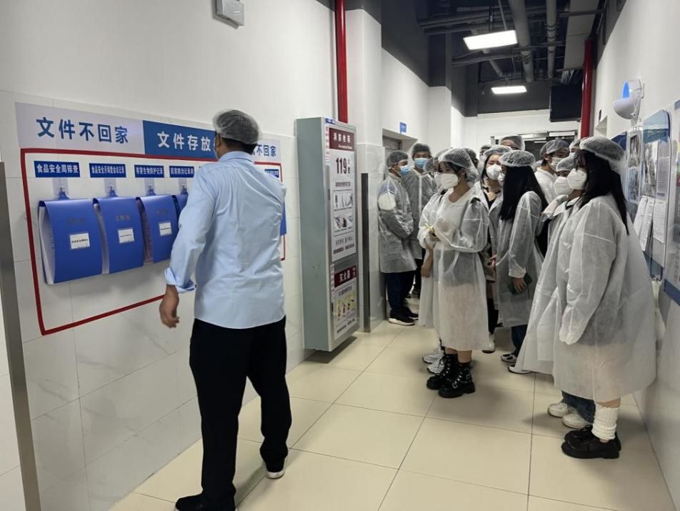 品尝完饺子,同学们在北区食堂管理人员曹勇的带领下参观后厨,明亮整洁的环境、摆放整齐的餐具、规范有序的操作流程,让同学们对食堂的食品安全和保障有了更直观的了解。同学们纷纷表示,“看到如此干净卫生的后厨,以后在学校食堂用餐更加放心了!”