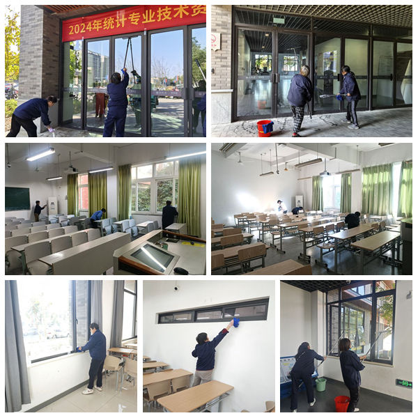 保洁比武主要考察员工在规定时间内进行教室卫生清扫的工作效率和整洁程度;消防安全比武主要考察员工对灭火知识、灭火器有效期识别、消防水枪安装等内容的熟练程度。