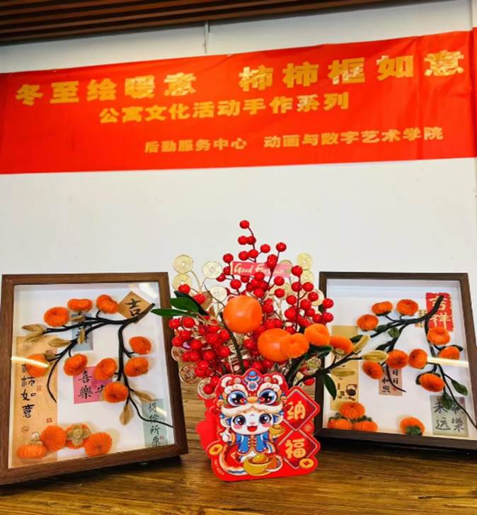毛茸茸的“柿子”挂满枝头,看起来可爱又喜庆……为丰富后勤公寓文化生活,增进学生与后勤的关系,后勤服务中心联合动画与数字艺术学院于12月20日下午在钱塘校区15号楼活动室,开展“冬至绘暖意、柿柿框如意”——扭扭棒柿柿如意画框制作公寓文化活动。
