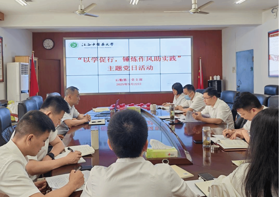 5月22日,江西中医药大学后勤第三党支部开展“以学促行,锤炼作风助实践”主题党日活动,通过集中学习、交流研讨、党课教育等形式,引导党员干部筑牢思想防线,强化责任担当。